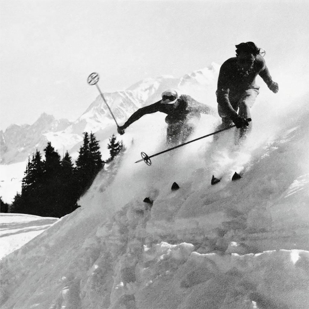 Willy Ronis revient sur le contexte dans lequel a été prise la photo de couverture : « (…) De plus, j’avais fait la connaissance d’un garçon de mon âge, André Ledoux, qui avait fondé une école de ski et une agence de vacances sportives dans la neige. Cette photographie représente deux de ses moniteurs. Elle a été faite le 23 février 1938. J’ai retrouvé la coupure du quotidien le Jour-Écho de Paris du 27 décembre 1938 où elle parut, au format 19 x 24, pour informer les lecteurs de l’Exposition internationale de photographies de neige présentée rue Lafayette au Grand atelier, galerie appartenant au magasin et importateur-photo Tiranty, disparu depuis. Le négatif 6 x 6 a été perdu peu après, par un éditeur (mésaventure qui m’arriva plusieurs fois par la suite). Par bonheur, il me restait un bon tirage, à partir duquel je pus après la guerre réaliser un bon contretype 6 x 9. C’est d’après ce nouveau négatif que cette photographie a été tirée. Une photographie bis de celle-ci, faite dans la même séance, mais avec un seul skieur, avait été éditée en affiche pour la direction du Tourisme, avant la guerre, sous le titre Neige de France« . (Le Palais, 247 route du Palais des Sports 74120 Megève/ megeve.com)