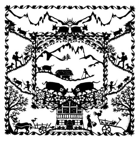 - C’est précisément là que Corinne Jouin exposera cet hiver une vingtaine de découpages traditionnels sur papier en noir et blanc et en couleur. Après Sophie Crawford qui a présenté ses œuvres à l’Albert Ier en 2004, c’est donc la seconde fois que les Carrier prêtent leurs cimaises à cet art populaire qui a pour berceau la Suisse voisine.