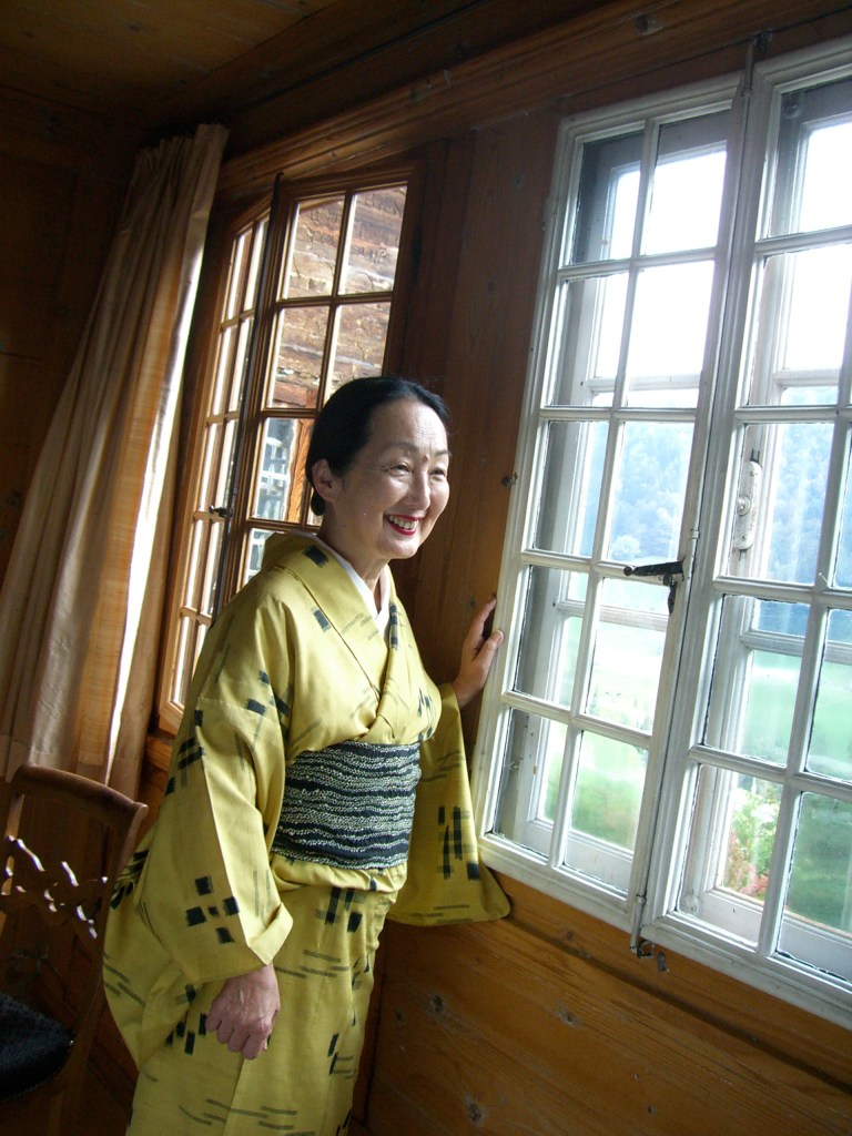 La comtesse Setsuko Klossowski de Rola, japonaise, me raconte leur coup de foudre pour le Grand chalet lors de notre première rencontre pour mon émission « La vie de chalet » (lien en annexe). Elle s’est sentie « prise » par la bâtisse dès l’entrée dans ce couloir étroit et déjà très surprenant par rapport à la taille du bâtiment… « À la revue « Pays-d’Enhaut. Lieux historiques, Lieux vivants », elle confie: » je suis particulièrement sensible à la chaleur qui se dégage du bois. Au Japon, j’ai toujours vécu, comme mes ancêtres, dans une maison traditionnelle où tout est en bois. Quand vous rentrez dans une maison entièrement en bois, votre âme, même lointaine, est comme saisie par une rencontre invisible. Je l’ai fortement ressenti lorsque j’ai découvert le Grand Chalet. Je me suis immédiatement sentie chez moi. »