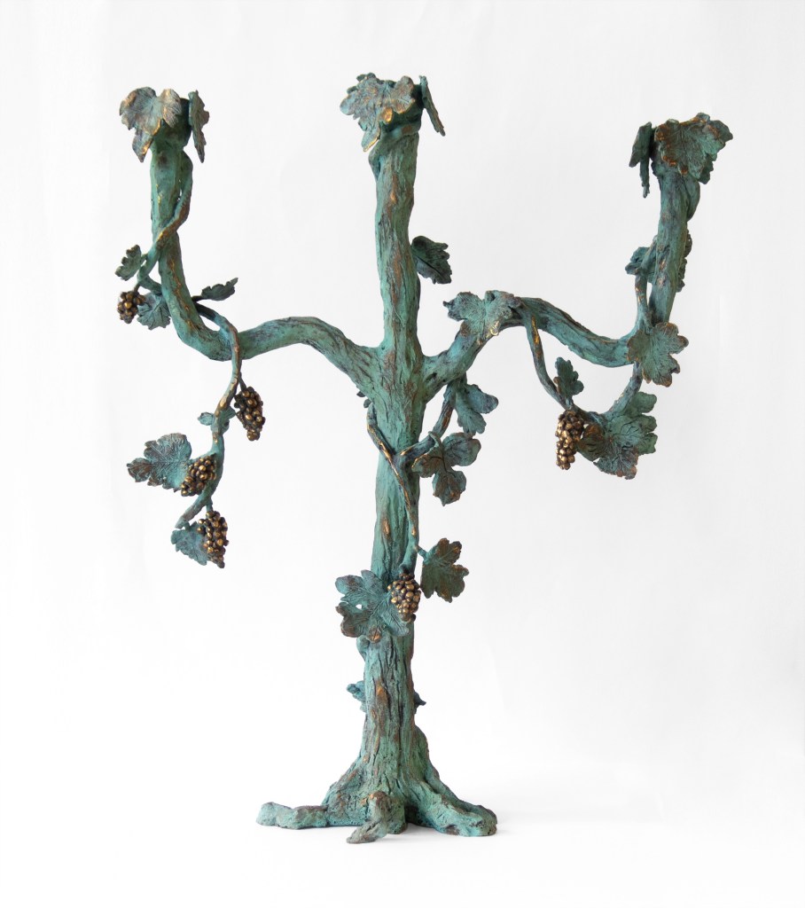 qui peuplaient jadis avec daims et daguets sous-bois et vallonnements du parc, les coupes portées par les mains dressées et ouvertes évoquent les corbeilles à cariatides du service précieux de l’Impératrice, les arbres font écho à son goût pour l’aménagement de ce lieu de délices, planté des plus rares essences du monde. Même le blanc des céramiques parle de cette