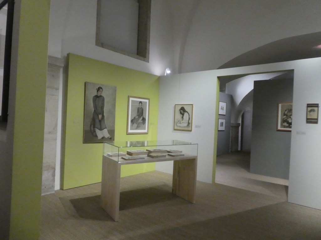 Cette première rétrospective opte pour une présentation chronologique en trois volets qui commence par sa jeunesse au Vietnam jusqu’en 1937, se poursuit par son séjour à Mâcon (1940-1942) – époque charnière – et s’achève avec sa carrière en France entre 1938 et 1980. Il faut prendre du temps pour regarder attentivement les cent quarante œuvres présentées (huiles sur toile, peintures sur soie, dessins, photos et lithographies) valorisées par des cadres conçus également par l’artiste. Un parcours aussi riche qu’enthousiasmant qui se prolonge dans la crypte du musée par différents documents et archives où l’on découvre Mai-Thu musicien, cinéaste et photographe. Des années 30 date une série de clichés montrant les costumes et habitats des ethnies montagnardes du Vietnam.