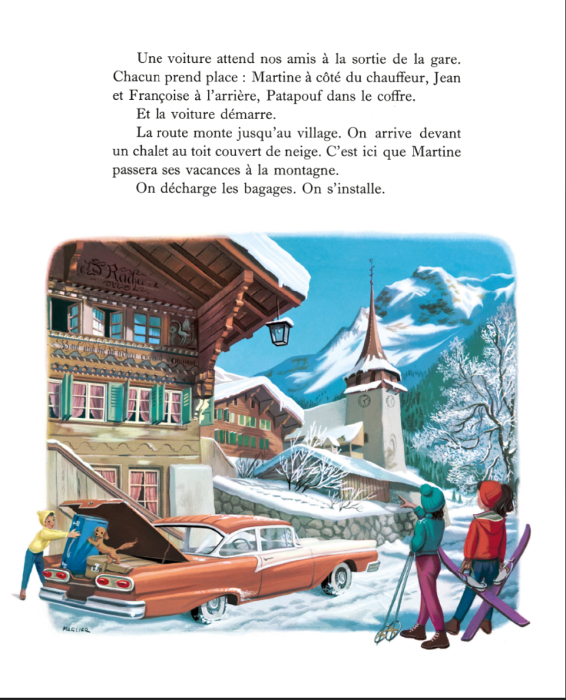 Voici ce que raconte « Martine à la montagne » : « Martine, Françoise, Jean et Patapouf (le chien de Martine) viennent passer leurs vacances de Noël à la montagne.