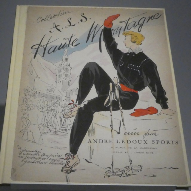 Une place de choix est réservée à Jean Patou pour qui « la silhouette sportive c’est le chic absolu » (et il le prouve avec ses créations !) mais aussi à André Ledoux, au parcours moins connu et plus atypique sans doute. Pendant l’entre-deux-guerres, ce grand sportif fonde les premières écoles de ski de Megève et Chamonix qui seront nationalisées pendant sa captivité en Allemagne. De retour en France il se lance avec succès dans la création de vêtements de sports à la fois stylés et confortables. Ses créations s’étendent à des tenues chics dédiés à l’après-ski. En I948 sa double expertise reconnue et appréciée le désigne même pour habiller l’équipe de France olympique lors des Jeux d’hiver à Saint-Moritz.