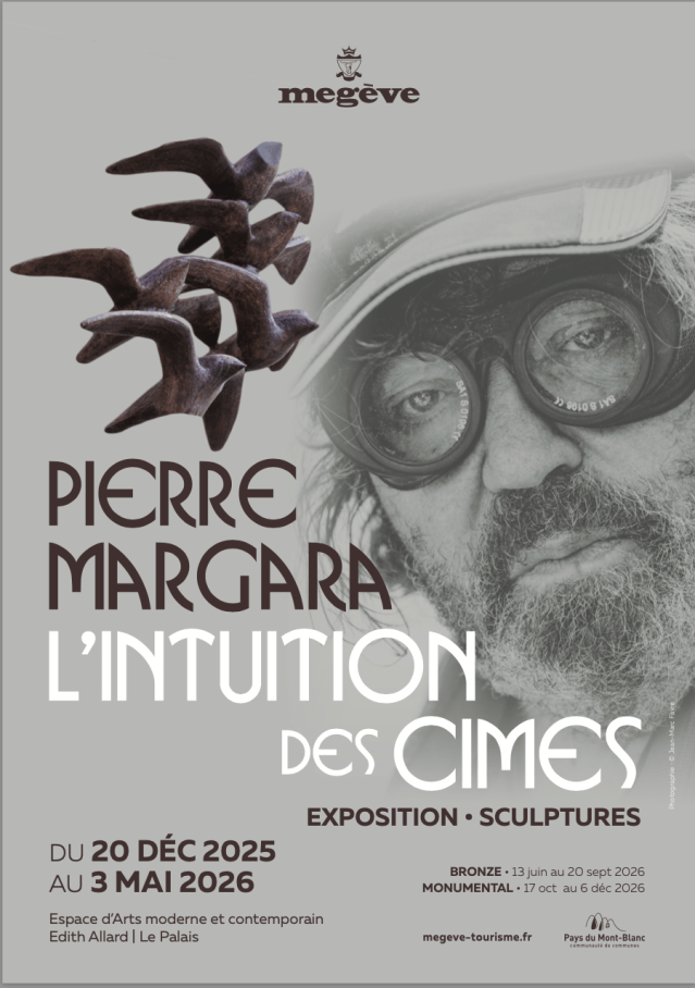 « Pierre Margara, L’intuition des Cimes », Espace d’Arts moderne et contemporain Edith Allard | Le Palais, 247, Route du Palais des Sports 74120 Megève (catalogue édité par l’Atelier Esope à Chamonix) – Trois volets : SCULPTURES, 20 décembre 2025 au 3 mai 2026 / BRONZE, 13 juin 2026 au 20 septembre 2026/ MONUMENTAL, 17 octobre 2026 au 6 décembre 2026.